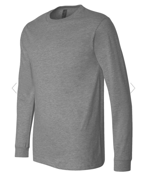 Tshirts and long sleeve tees will be printed on a softstyle Deep Heather Grey Bella Canvas