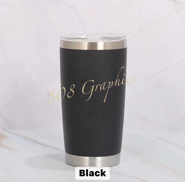 Tumblers may be personalized and engraved upon request. Please contact 808graphicsllc@gmail.com to personalize your order.